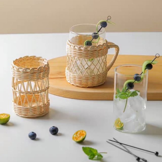 ガラスマグカップ コップ グラス ラタン 韓国雑貨 韓国インテリア おしゃれ 可愛い cafe