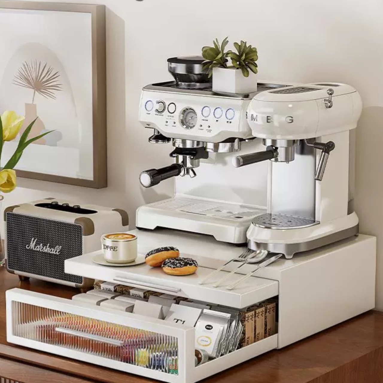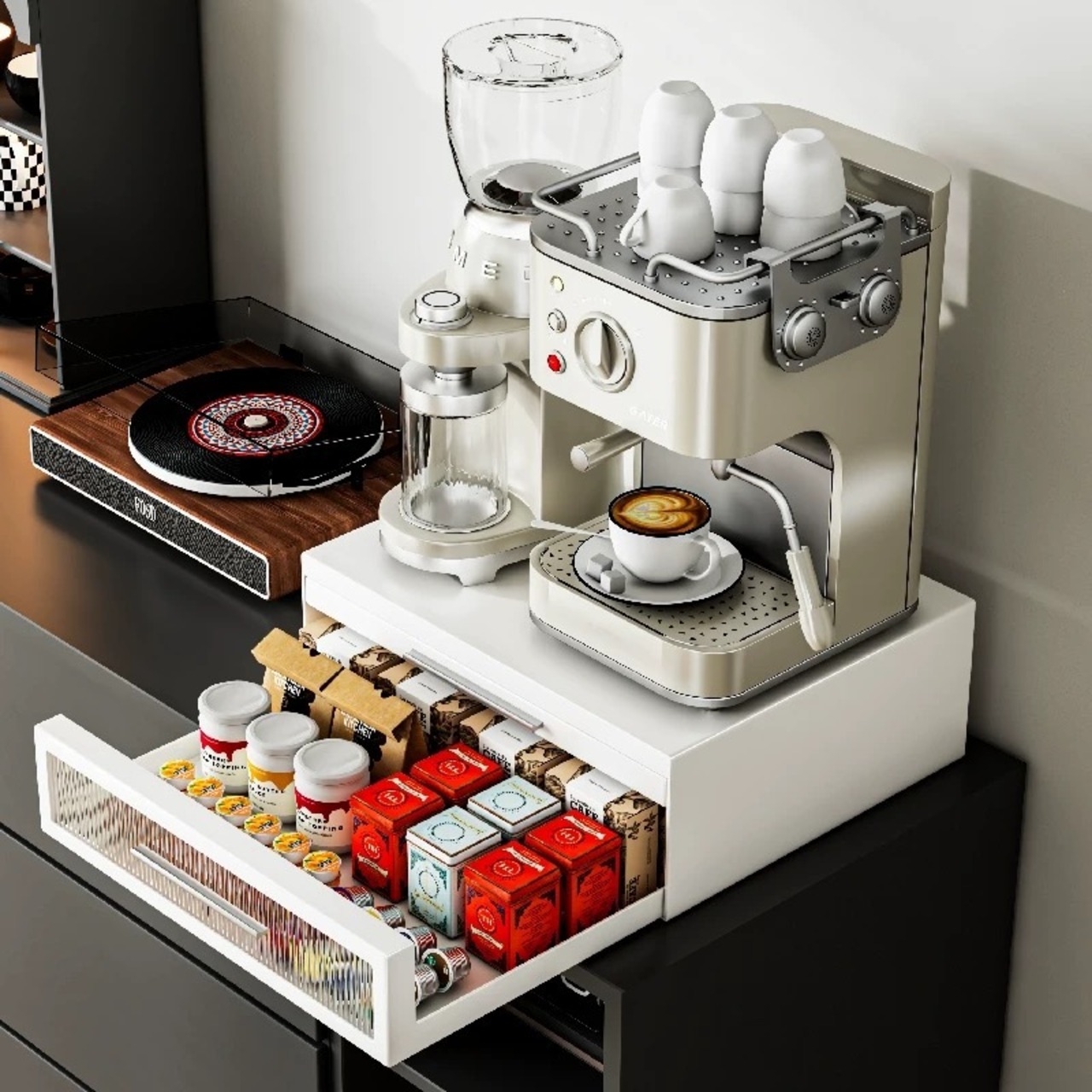 引き出しにはカトラリーやドリップカプセルなど様々なものをたくさん収納できます。