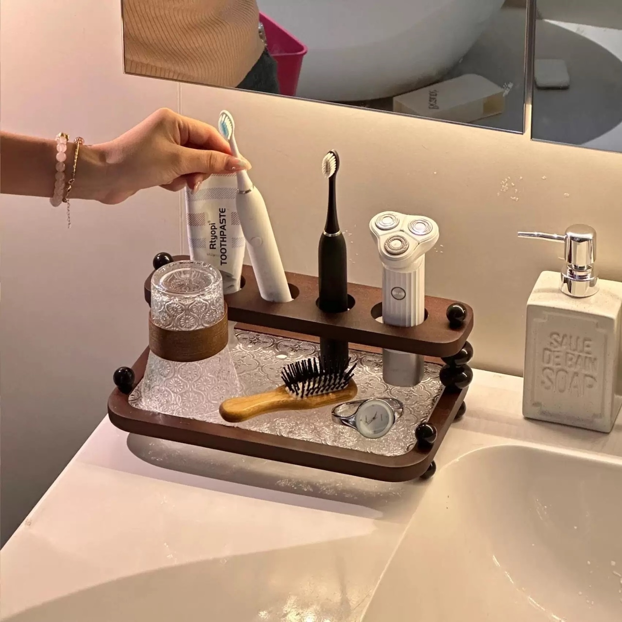 ガラスデザインがおしゃれな歯ブラシスタンド。