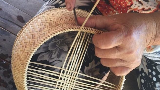 手作業で作られている、ラタン(籐)トレイ。