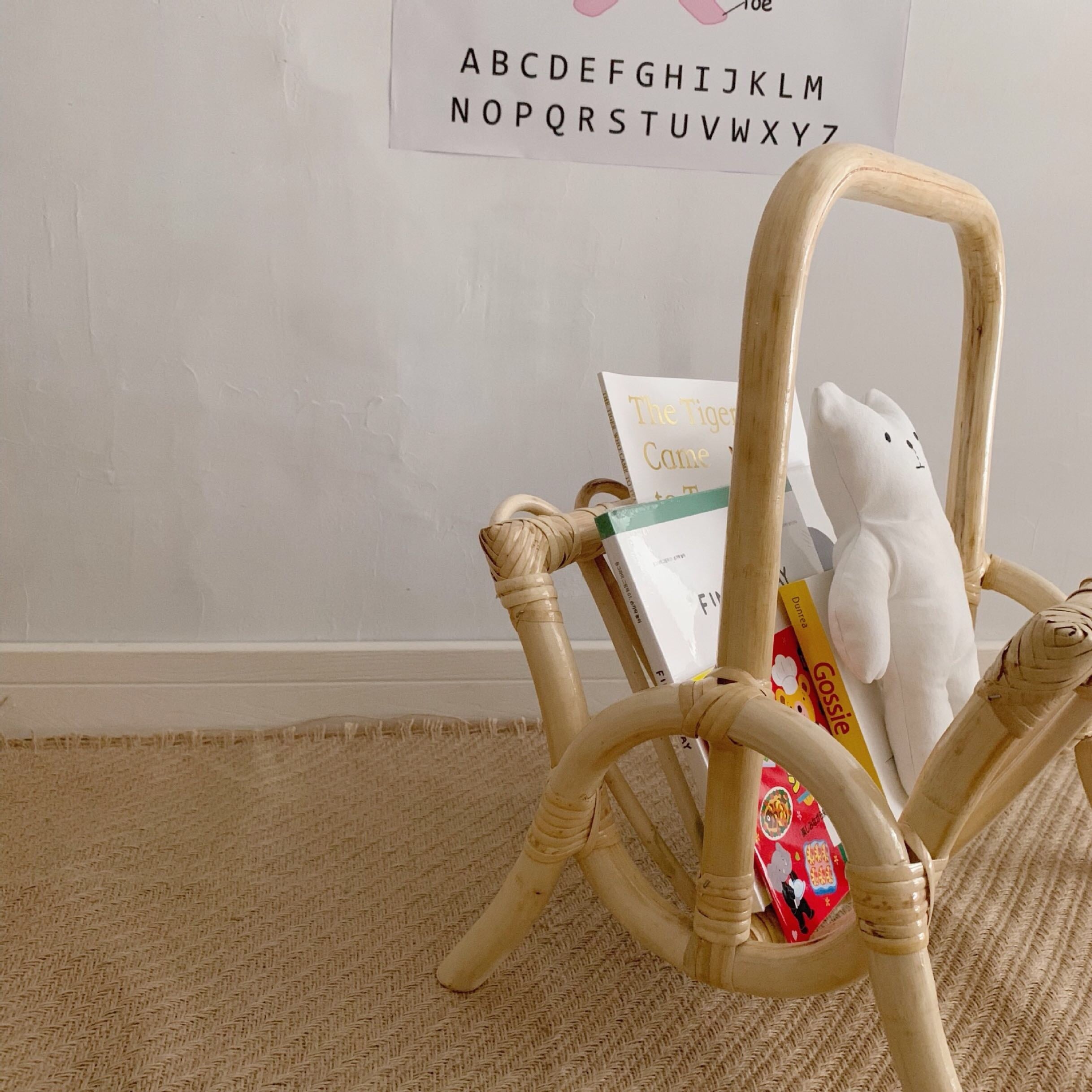 ラタンのマガジンラックです。子供部屋では絵本やぬいぐるみを入れて可愛く置くこともできますし、リビングでは雑誌や新聞など入れたり色んな使い方ができます。