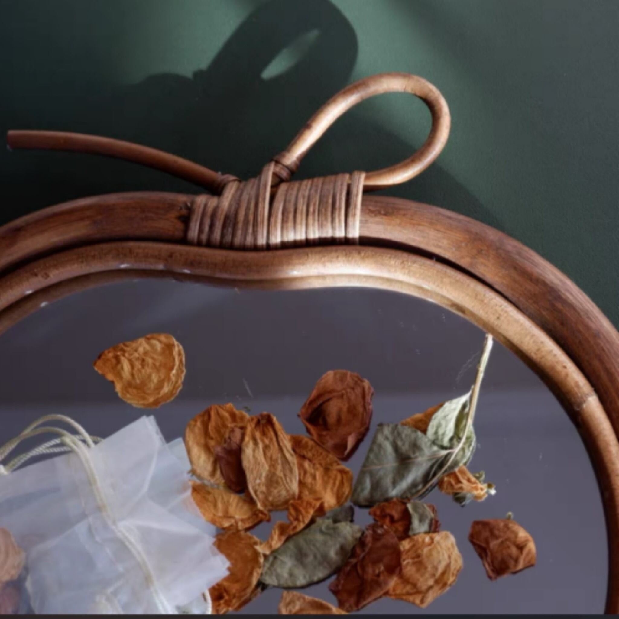 アップルの形が可愛いラタン編みのおしゃれなミラー。