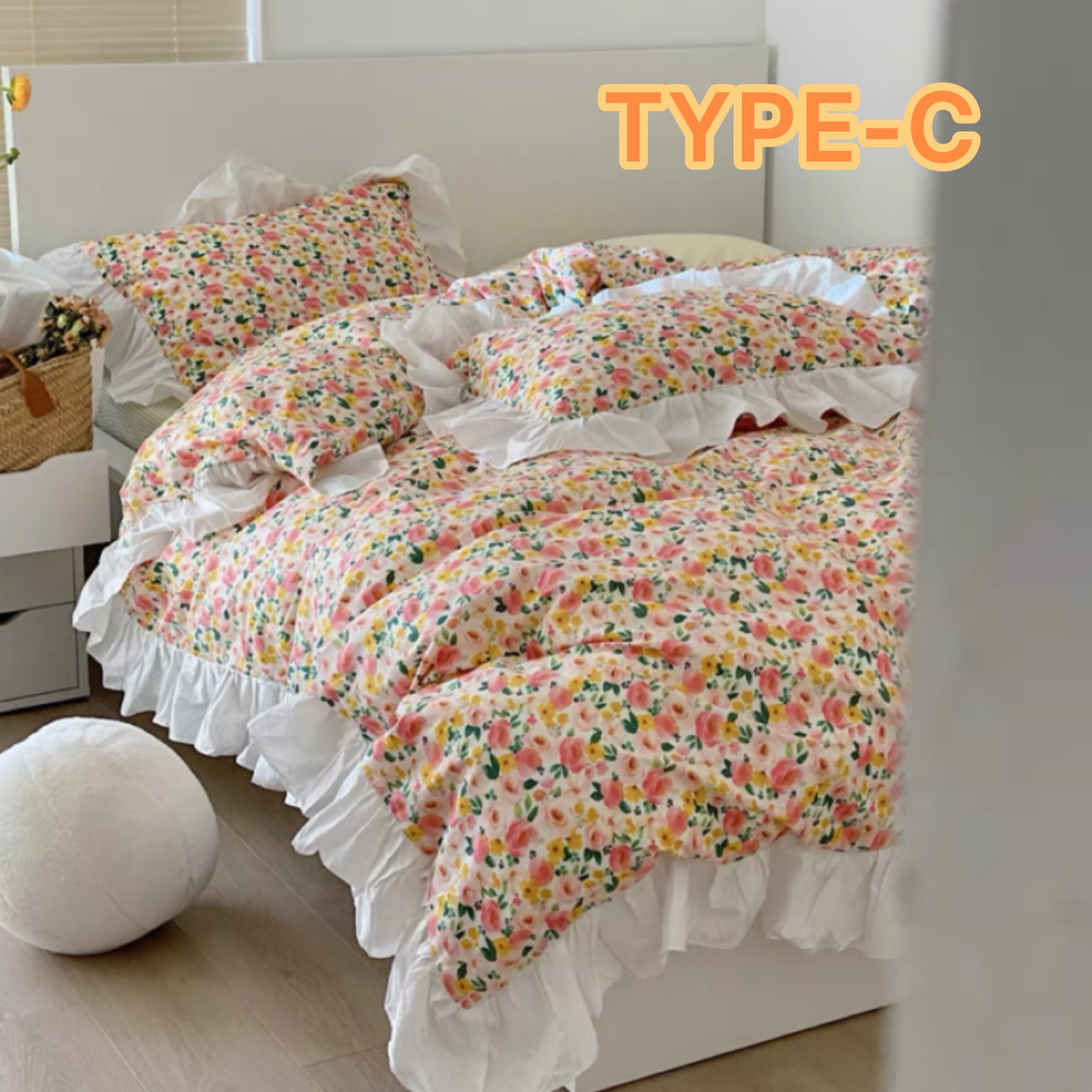 リネンセット べットカバー 花柄 フリル 韓国雑貨 韓国インテリア おしゃれ 可愛い シンプル ナチュラル