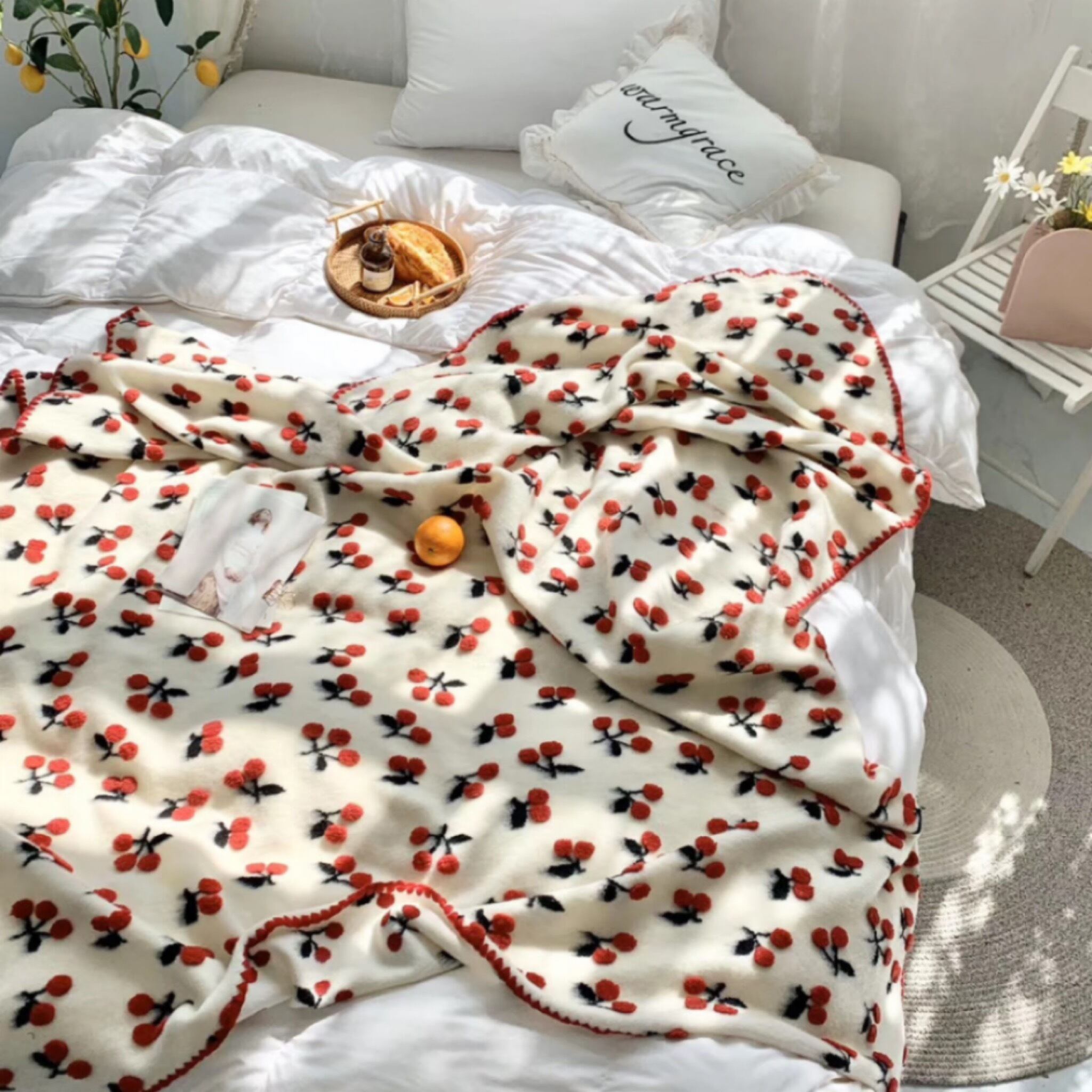 チェリーとストロベリーの柄で可愛らしいブランケット!