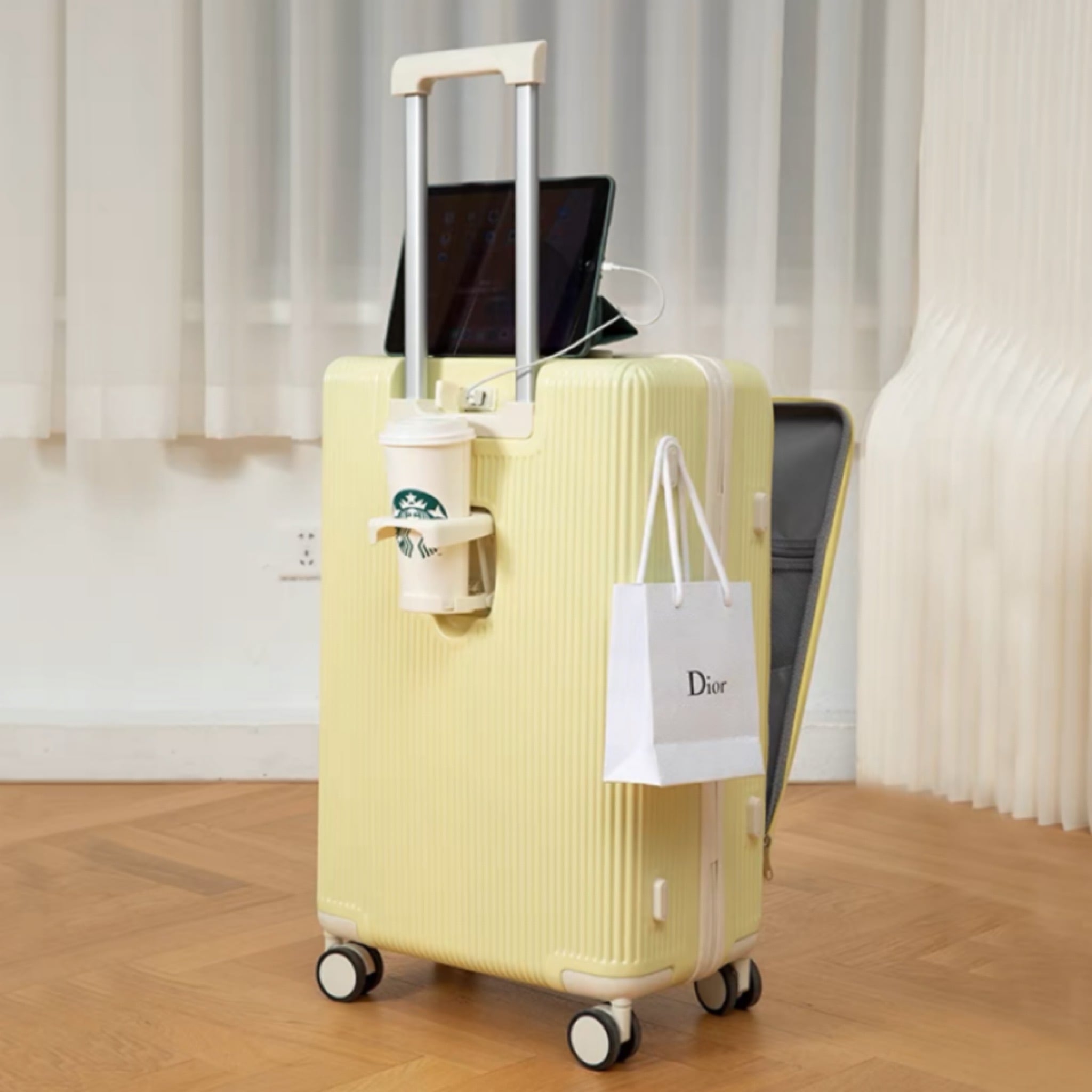 ドリンクホルダーもついているので移動中のドリンクも入れれてとっても便利なキャリーケース です。